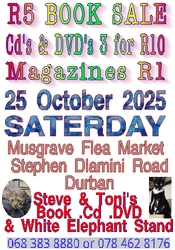 Monster R5 Book sale .Dvd’s & Cd’s 3 for R10 Sat 25 Oct Musgrave Flea Mkt - Durban